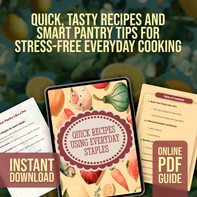 Quick Recipes Using Everyday Staples | Pantry Staples Guide for Fast Meals, Snacks & One-Pot Wonders | Digital Download eBook